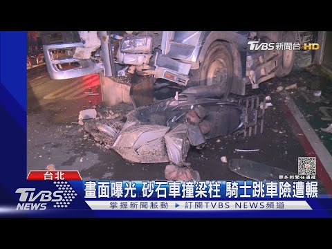 畫面曝光 砂石車撞梁柱 騎士跳車險遭輾|TVBS新聞 @TVBSNEWS02Скачать