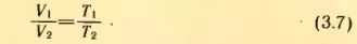 Из уравнения состояния идеального газа (3.4) вытекает, что отношение объемов газа данной массы при постоянном давлении равно отношению его абсолютных температур. Действительно, для первого состояния: