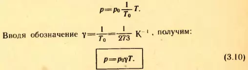 Коэффициент γ (равный температурному коэффициенту объемного расширения α) называют температурным коэффициентом давления газа. Он одинаков для всех газов. Все газы увеличивают свое давление на 1/273 того давления, которое каждый из газов имел при 273 К (0°C), если температура возрастает на 1 К.