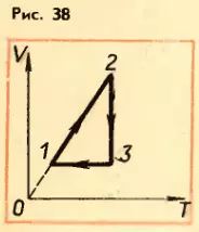- На рисунке 38 дан график изменения состояния идеального газа а координатам V, T. Представить этот процесс на графиках в координатах p, V и p, T.