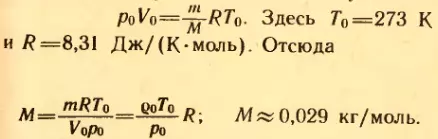 3. Плотность воздуха при нормальных условиях (т. е. при t0 = 0°C и нормальном атмосферном давлении p0 = 101325 Па) ρ = 1,29 кг/м3. Найти среднюю молярную массу M воздуха.